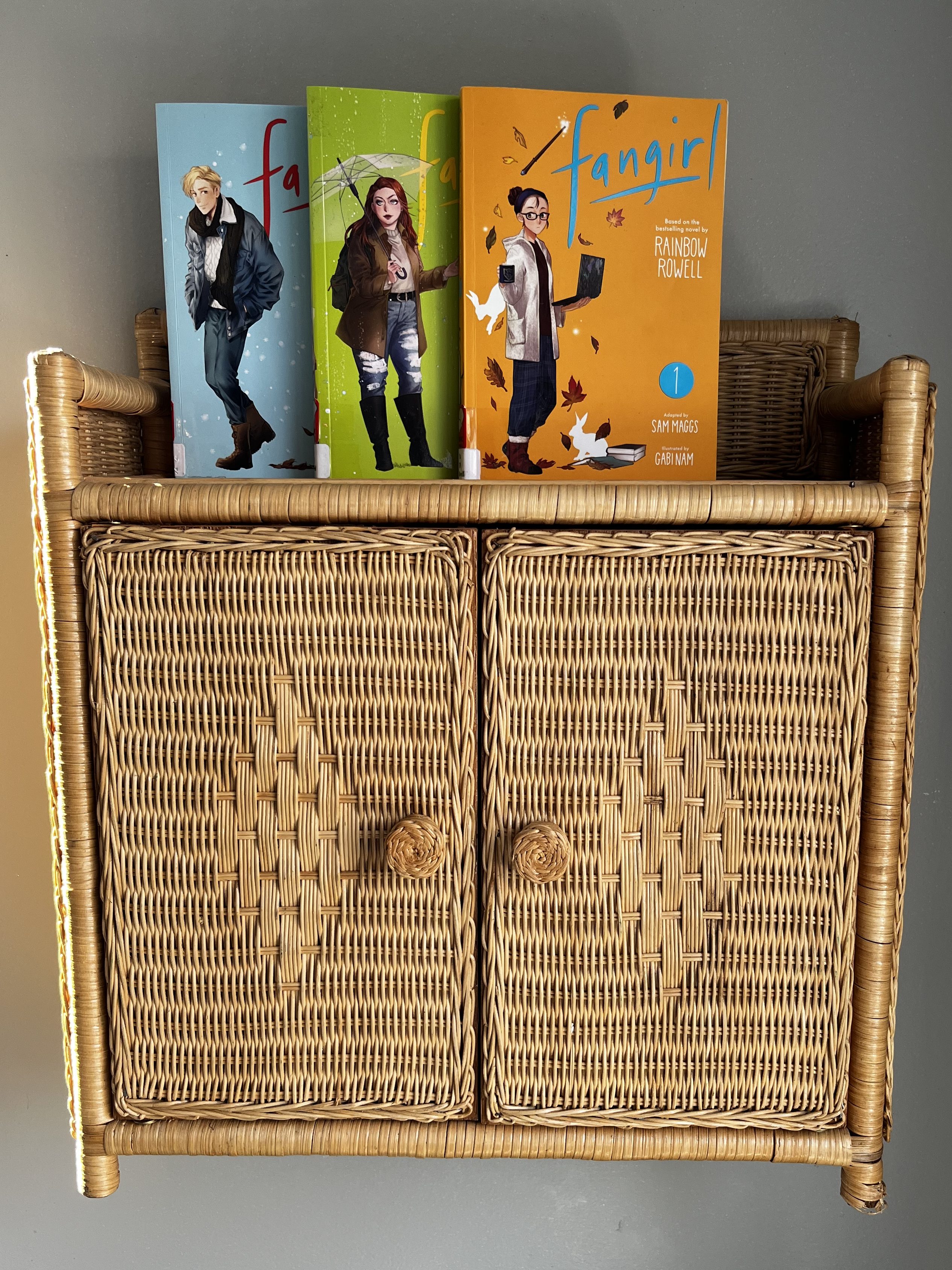 In 2017, I picked up Fangirl by Rainbow Rowell from the library. It quickly became one of my favorite books. I recall the teal blue cover, staying in my room all day reading, and having my first experience finishing a book and immediately starting it again. This book made me feel seen in a way that you can only understand if you have stayed up every night until the early hours of the morning reading fan fiction when you have school/work/life to focus on the next day. Our main character, Cath, would understand when people (who knew I love reading) would ask me what books are my favorite recently, and I didn’t know how to reply because I had only been reading novel-length Harry Potter fan fiction that I wasn’t about to advertise. So, I read this book again, and again and I felt seen and comforted. The older I’ve gotten, the less I’ve read fan fiction, and the less Cath’s story has resonated with me. While I still love her, I am no longer just out of high school and experiencing the chaos that is college years with her. Recently, these new manga style graphic novels came out and I wanted to experience a peak into the past. These books did not disappoint. Let’s dive in!